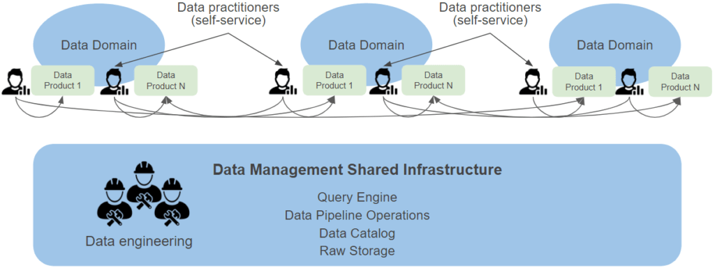 - It compels a “data as a product” mindset, where domains standardize the data sets they expose to the rest of the organization, requiring them to address data quality the same way one thinks about product quality.