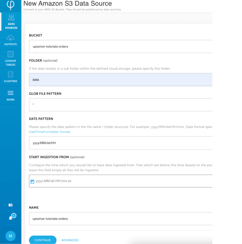 For the purpose of this post you’ll create an Amazon S3 data source that contains sample retail data in JSON format. Upsolver ingests this data as a stream; as new objects arrive they are automatically ingested and streamed to the destination.