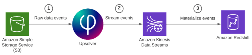 - How to configure Upsolver to stream events to Kinesis Data Streams that are consumed by Redshift using Streaming Ingestion