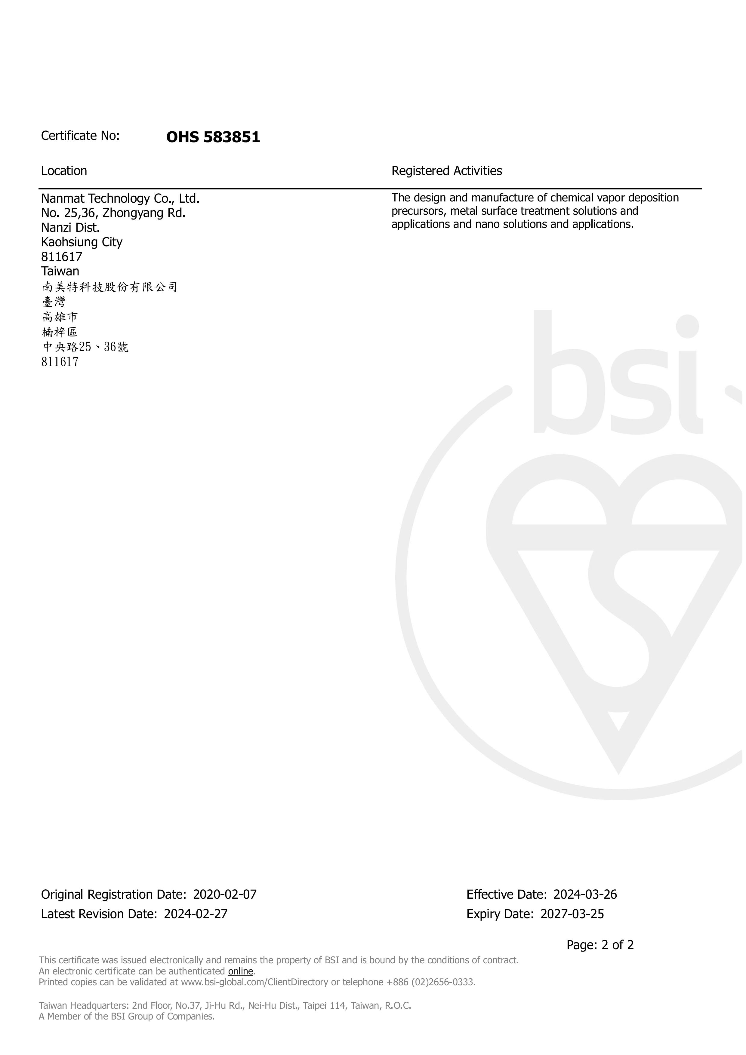 獲頒英國標準協會台灣分公司 BSI ISO45001:2018 認證-2024/03/26